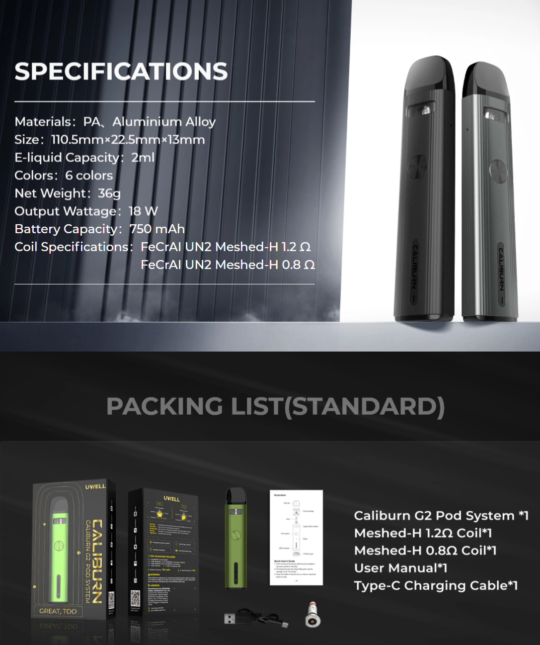 Caliburn G2 Pod Kit PAKET İÇERİĞİ: