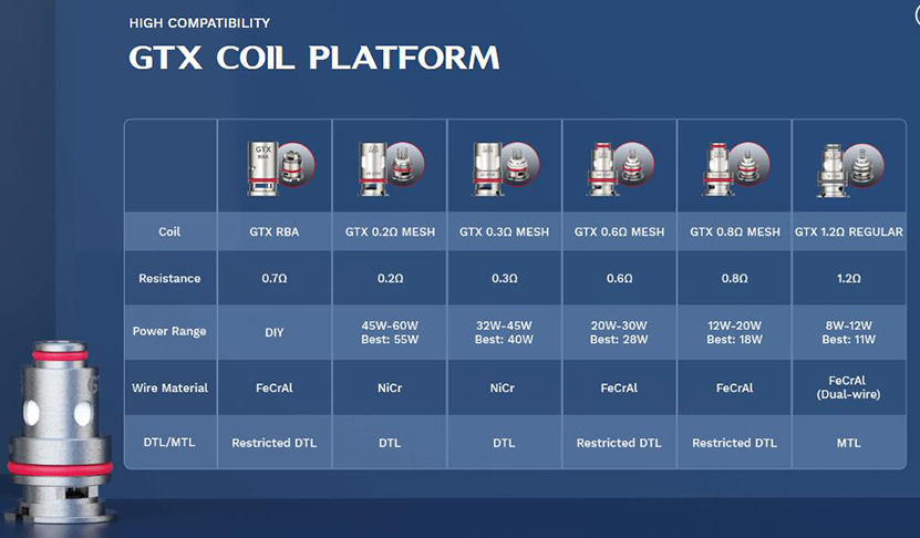 Vaporesso GTX 0.6ohm Mesh Coil Parametreleri: