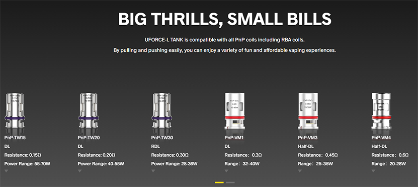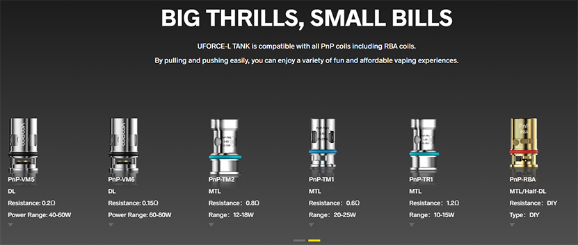| Standart Coilleri | PnP-TW 15 0.15ohm Coil , PnP-TW20 0.2ohm Coil |